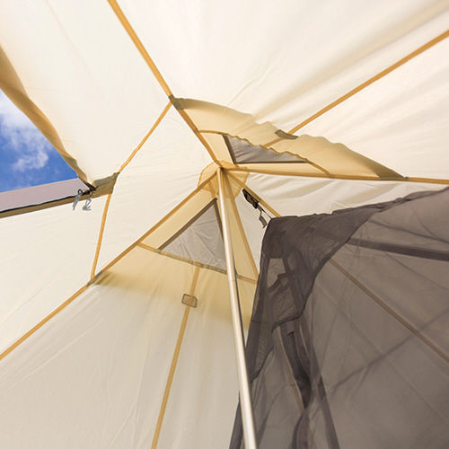 設営簡単!ポール一本で自立、設営できるワンポールテント。