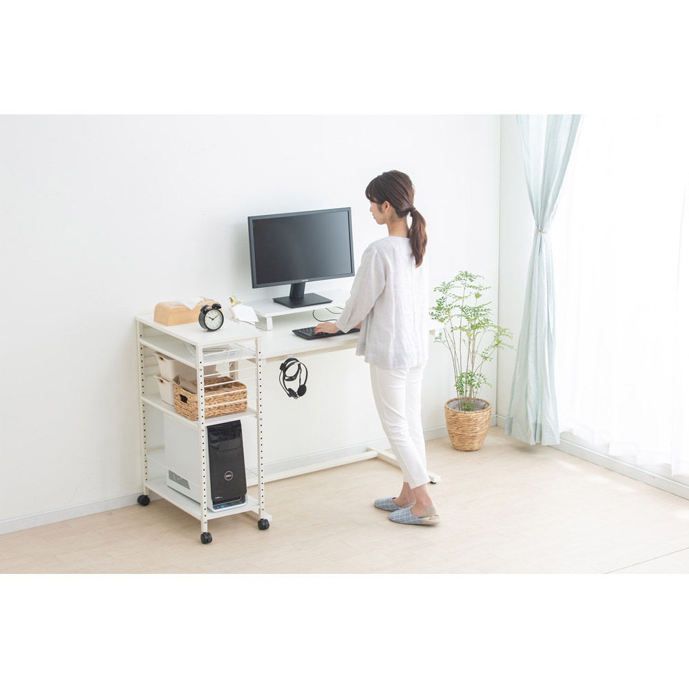 使用用途に合わせて組合せが可能な昇降デスクです。