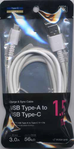| 商品名 | Type- A to C ケーブル 3.0A 1.5m ホワイト R15CAAC3A01WH [USB-A ⇔ USB-C] |