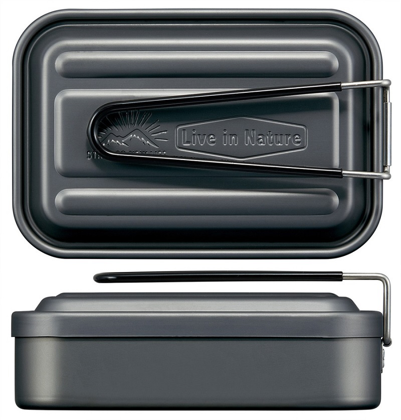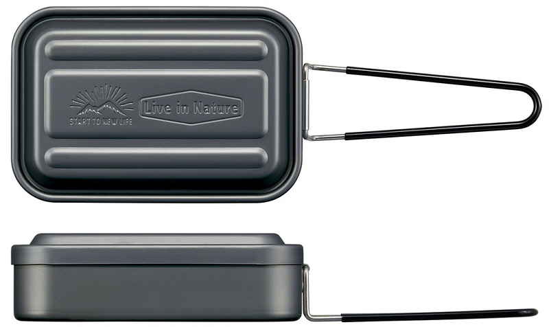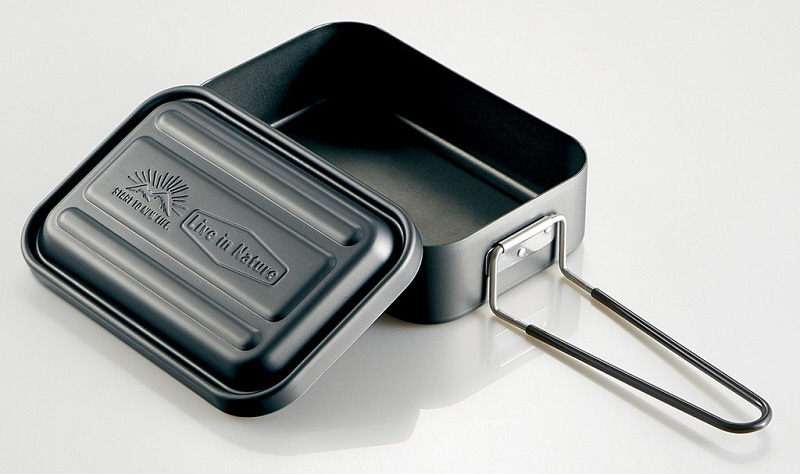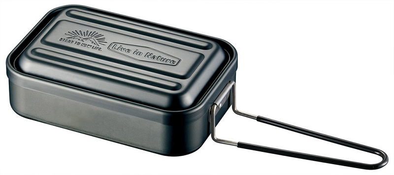 丈夫で熱伝導の優れたアルミ製メスティン。可動式ハンドルで収納時はコンパクトに。飯ごう炊飯、焼く、蒸す、煮るまでのクッキングレシピ付。軽量なので持ち運びに便利。