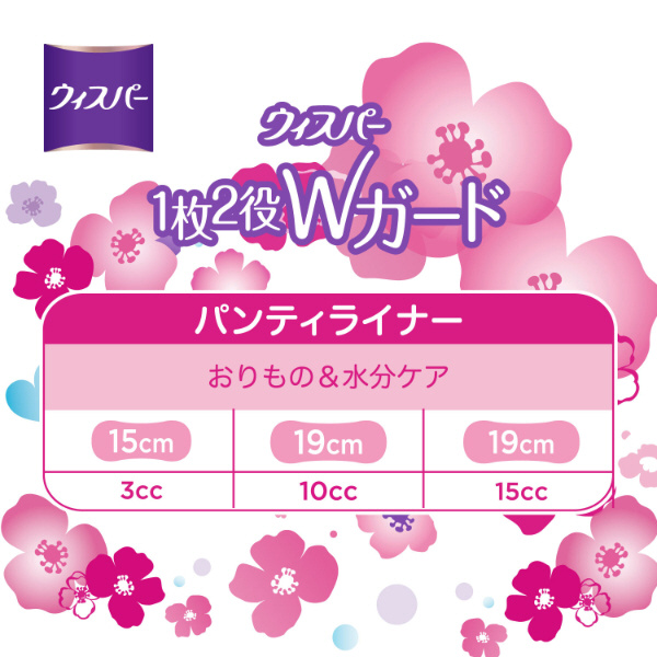 ウィスパー 1枚2役Wガード 女性用 吸水ケア 10cc おりもの&水分ケア パンティライナー 28枚入り 19cm ウィスパー
