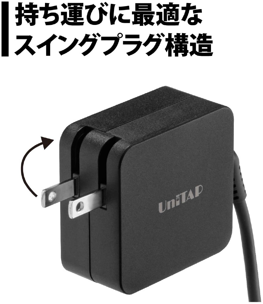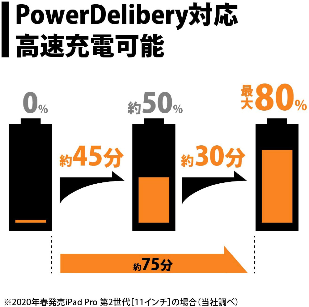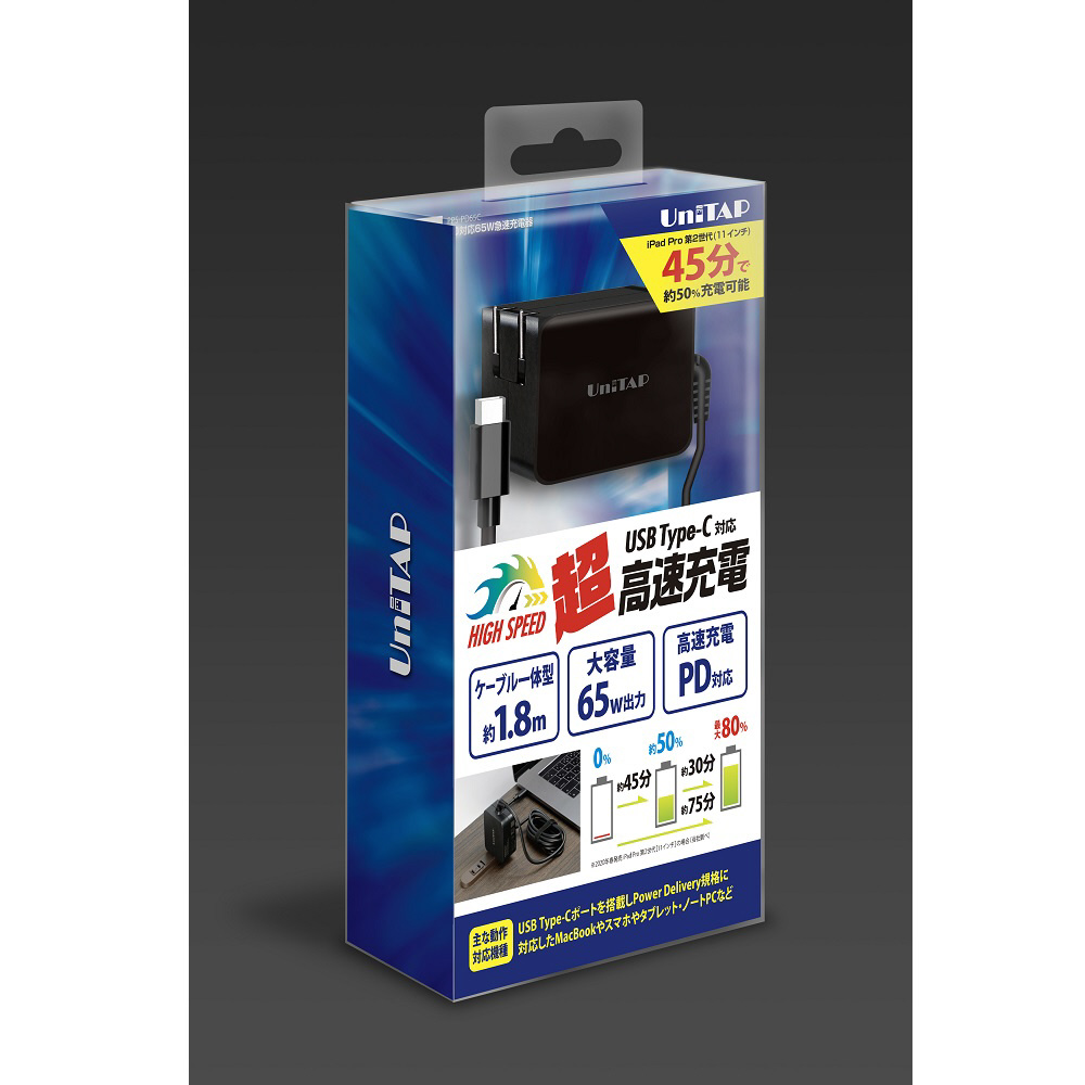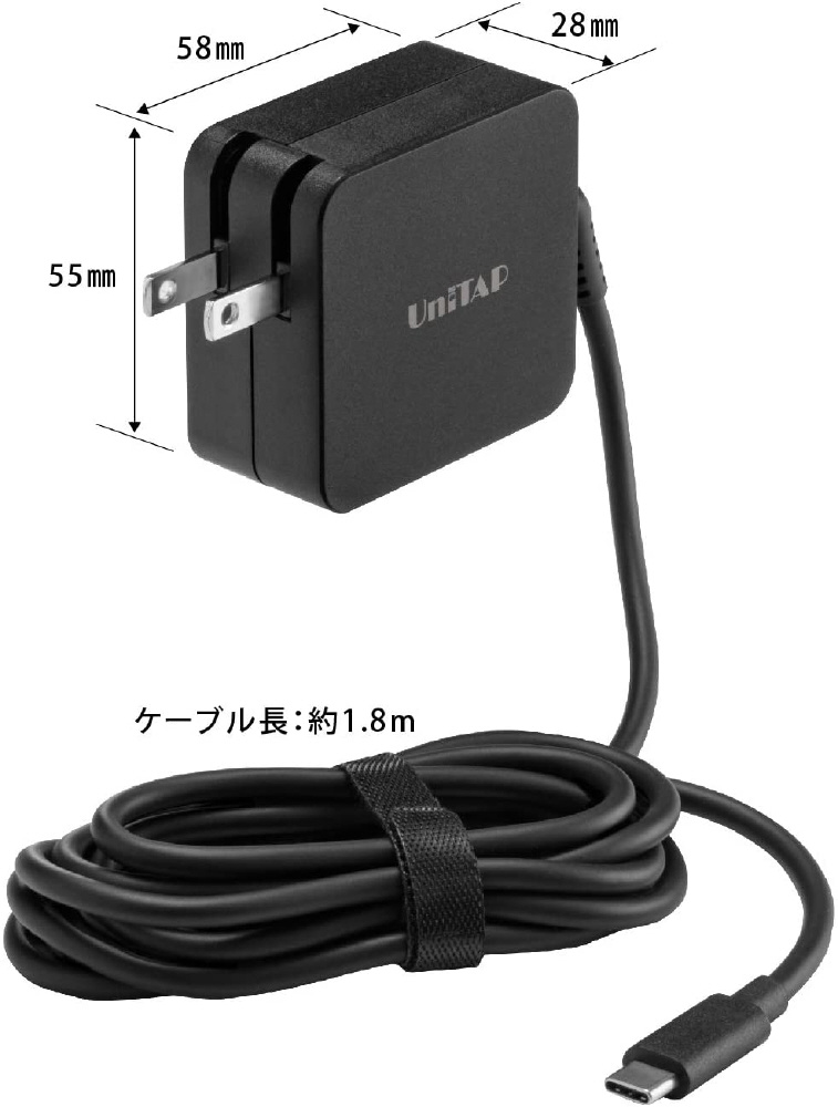 パワーデリバリーに対応し軽量/コンパクト化を実現した高速充電器。また、Type-Cケーブルが一体の為、安全で安定した充電が可能。