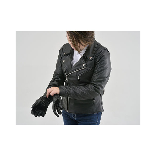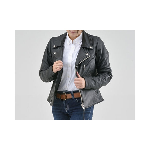 17818 バイク用 レザー ジャケット 春秋冬 ダブルライダースジャケット DL-003 WLサイズ(レディース) ブラック