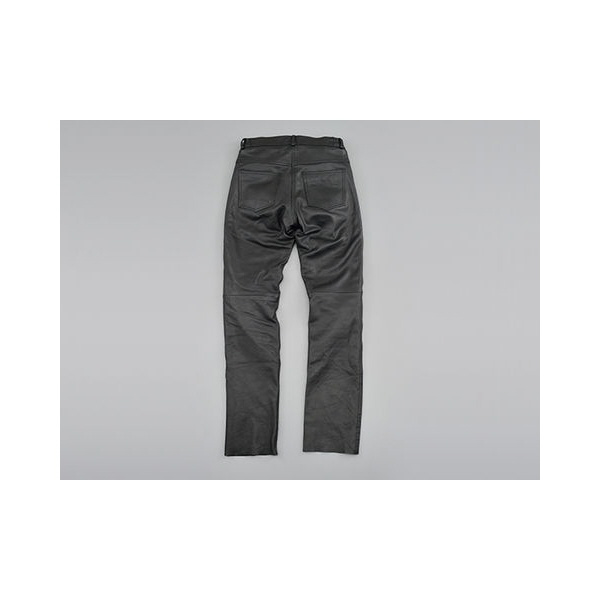 しっとりとやわらかい牛革(COW)の傷の少ない部位を贅沢に使ったジーンズタイプのレザーパンツ。
