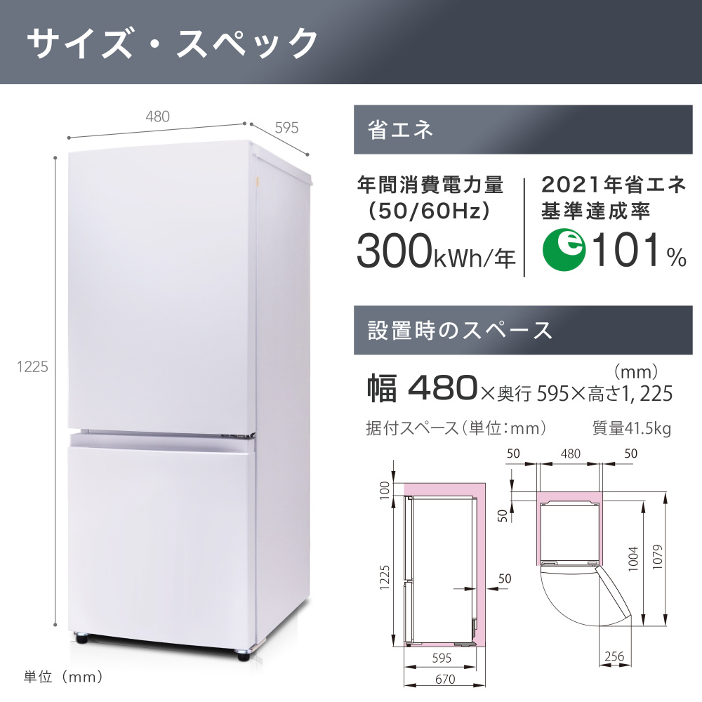 | 商品名 | 冷蔵庫 AT-RF150-WH [2ドア /右開きタイプ /154L] |