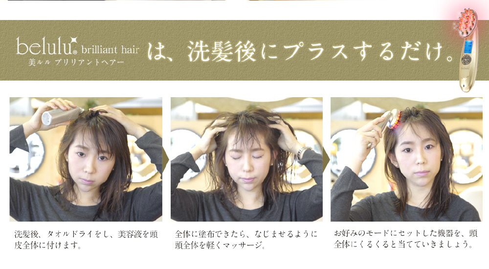 ■洗髪後、タオルドライ後の頭皮にお手持ちの育毛剤(本品に育毛剤は付属しておりません)を塗付してからご使用ください。