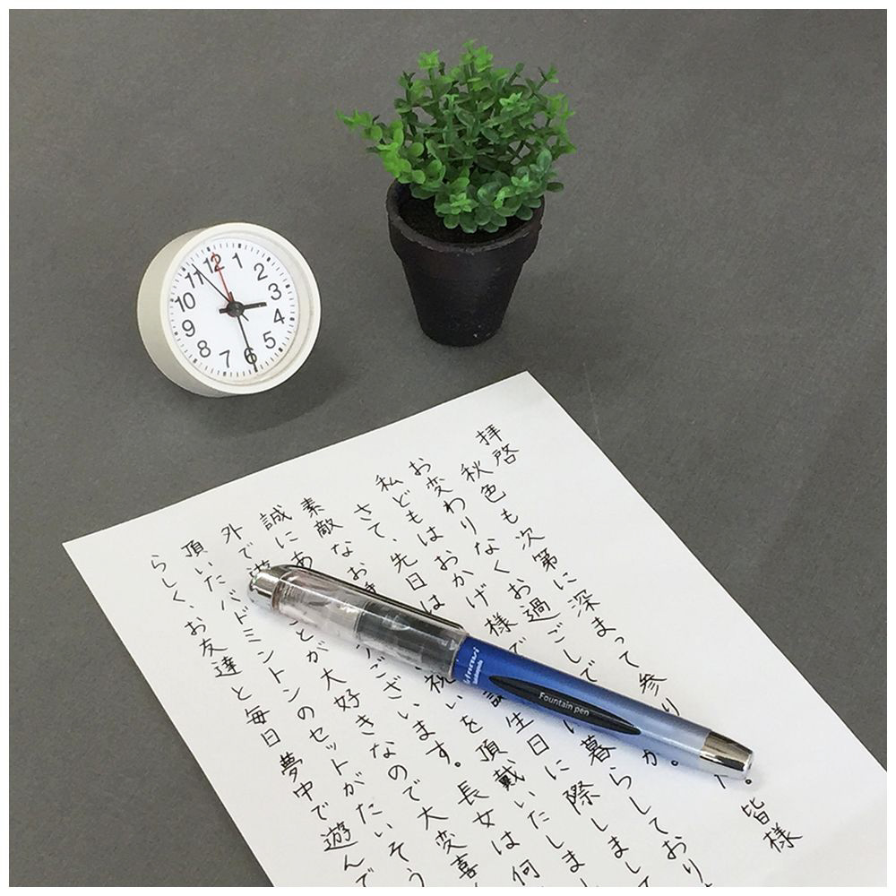 書きたい時にすぐに書けるカートリッジなし万年筆です。日常文書に最適なペン先・中字M・0.5mm、残量が分かるインク窓付き。手ごろな価格で一味違う書き物に。●本体寸法:W122×径12mm(本体のみ)、W137×径14mm(キャップ付)●本体:ABS樹脂、ペン先/スチール、中字M・0.5mm用、バネ/スチール、インク/水性染料インク●本体重量:14g