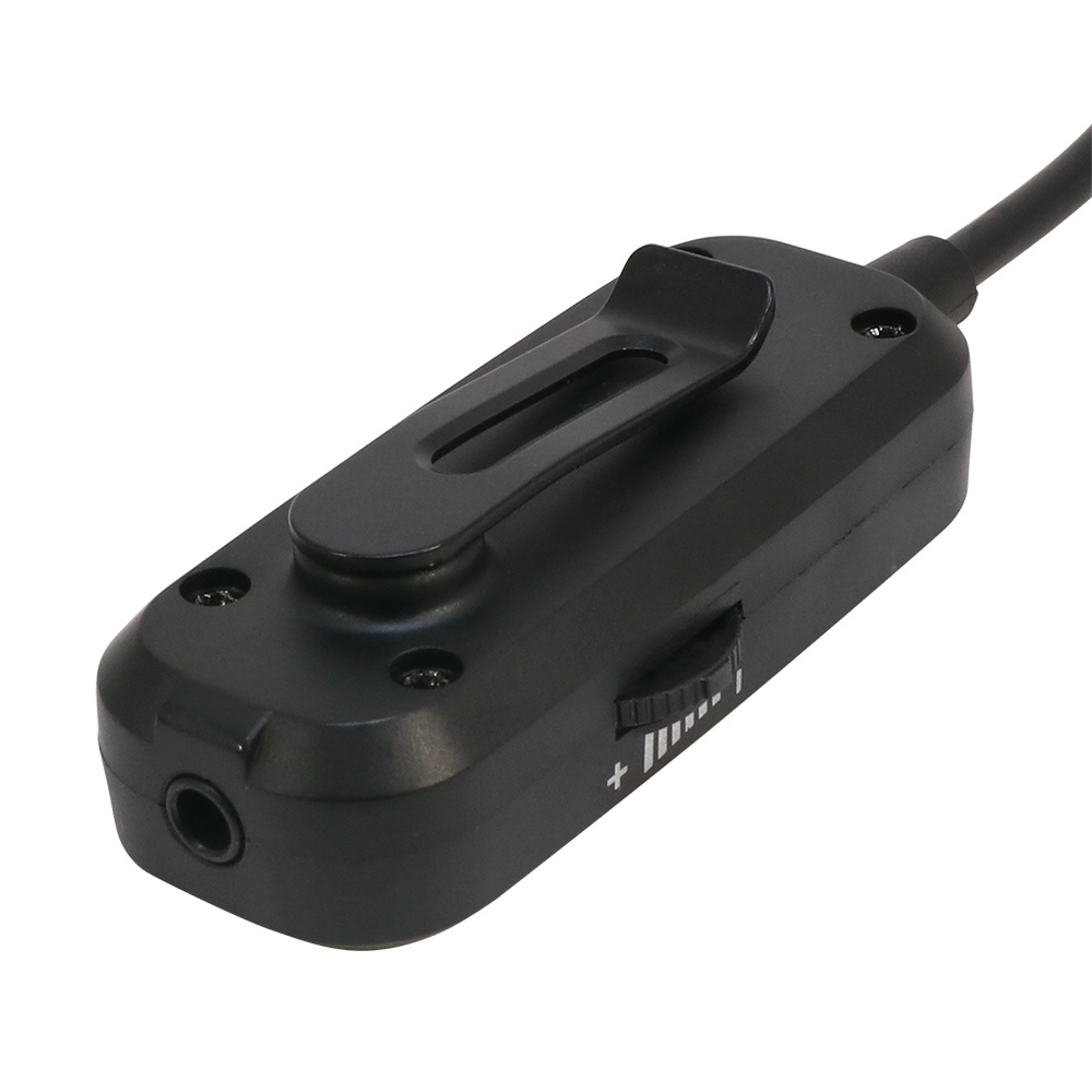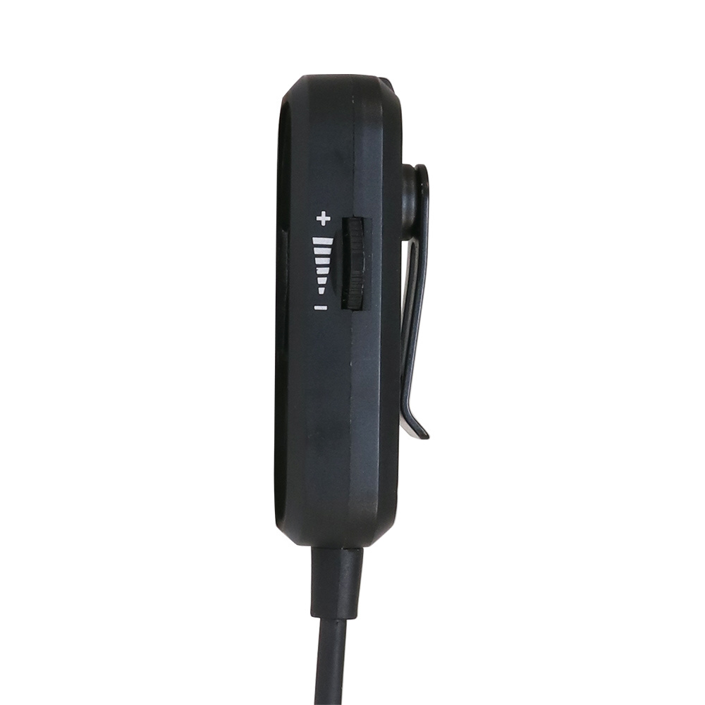 手元操作に便利な約80cmのロングケーブルと、シャツのポケットなどに固定し、本体がぶら下がって邪魔になるのを防ぐポケットクリップ付き。