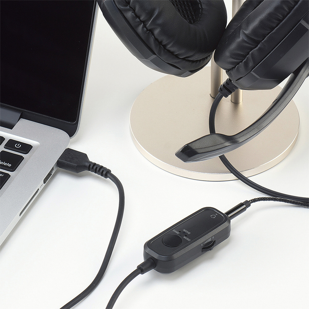 イヤホン/マイク端子のないパソコンでも、お気に入りのヘッドセットやマイク付きイヤホンをご使用いただけます。