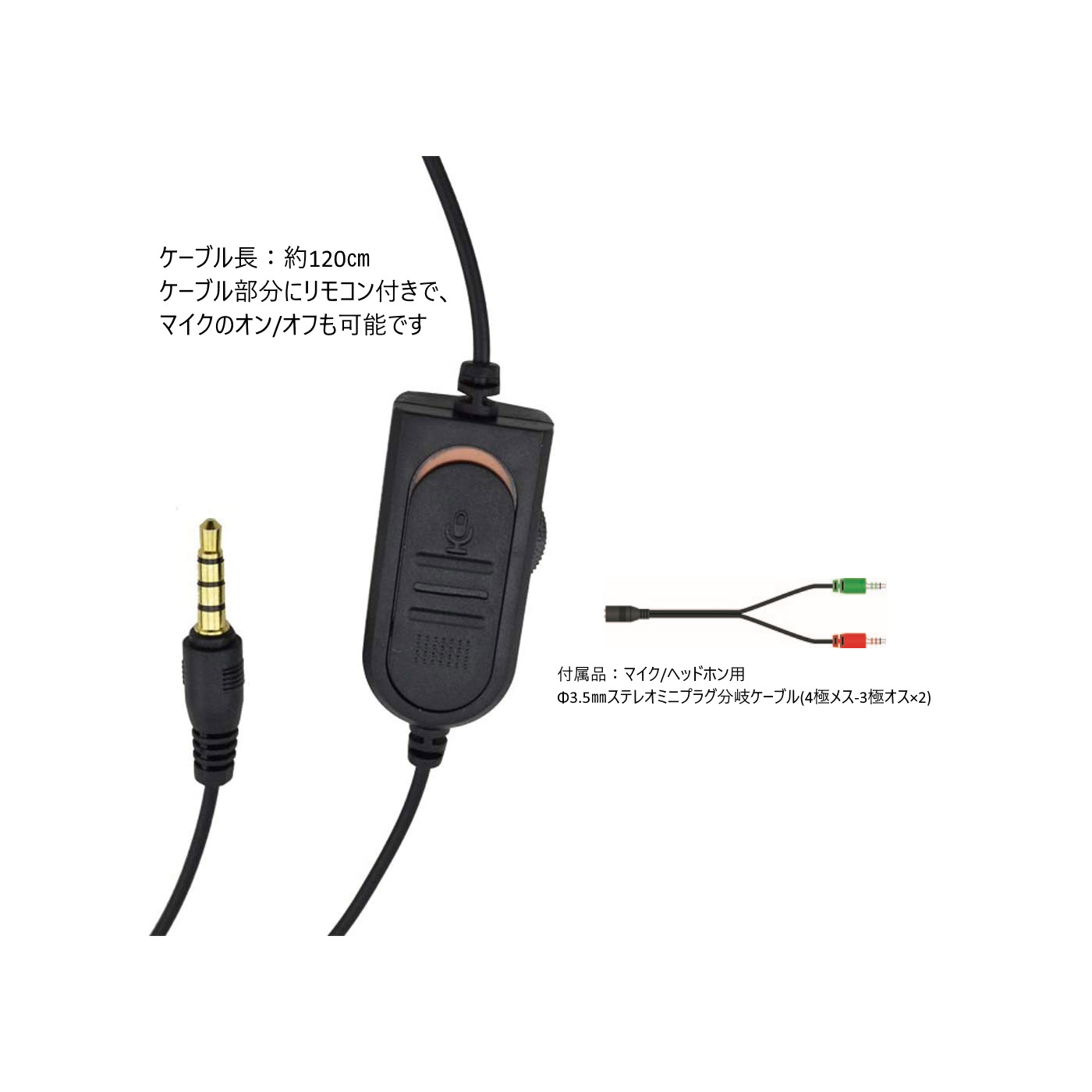 マイク/ヘッドホン用 φ3.5mmステレオミニプラグ分岐ケーブル(4極メス-3極オス×2)