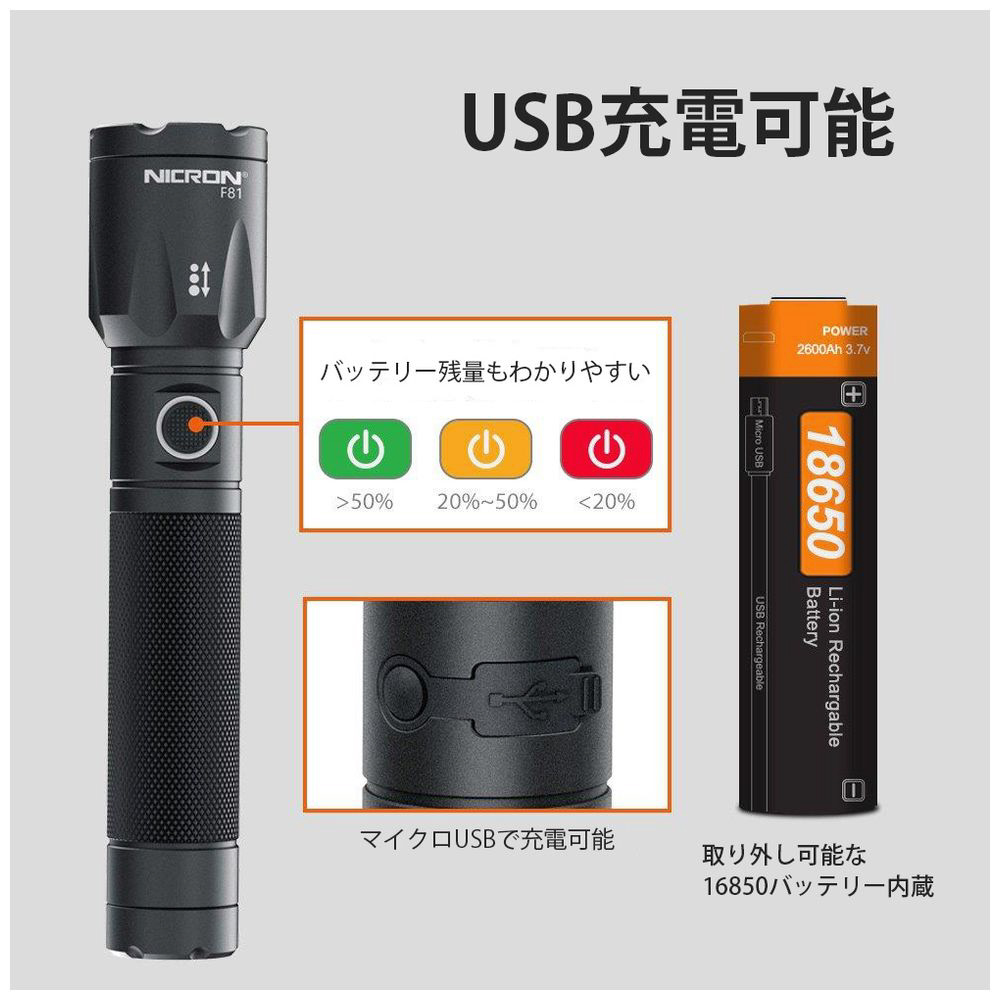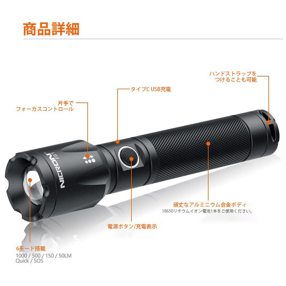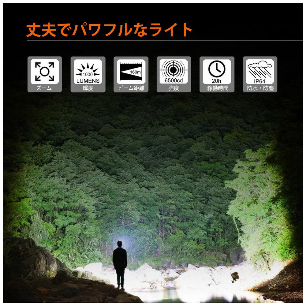 ●明るさが最高1000ルーメンの高輝度LEDハンドライト。