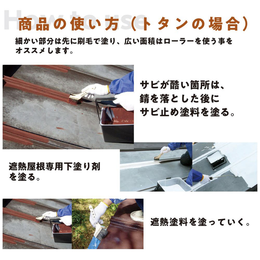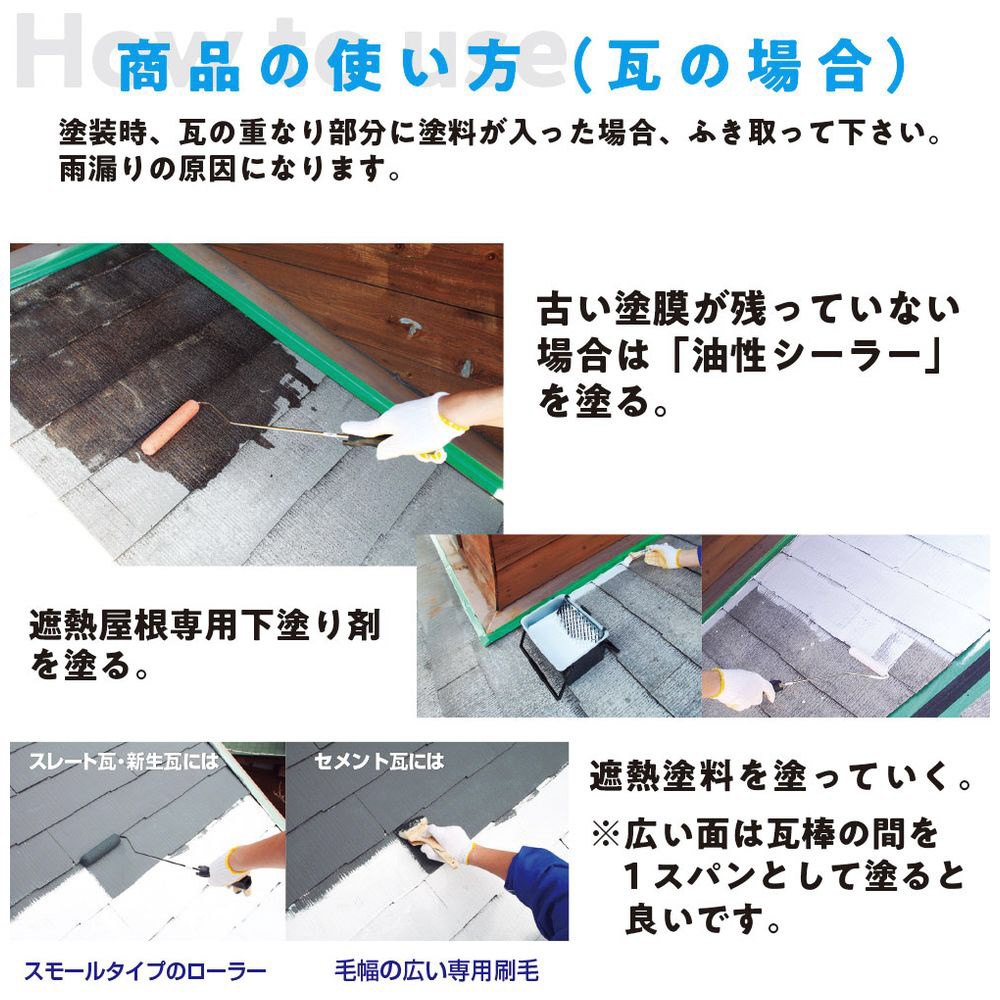 ●特殊遮熱顔料と赤外線反射顔料が赤外線を反射し、同じ色の従来塗料と比較して屋根の表面温度の上昇を抑えます。また室内温度の上昇を抑える効果もありますので、節電・省エネ効果も期待できます。