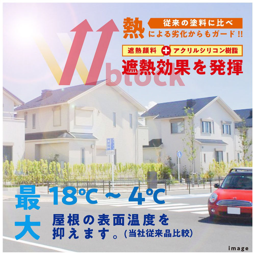 ●遮熱顔料と高耐久アクリル・シリコン樹脂配合のWブロック効果で、紫外線・排ガス・雪・酸性雨など外敵から建物を守り、長期間風合い・ツヤを保ちます。