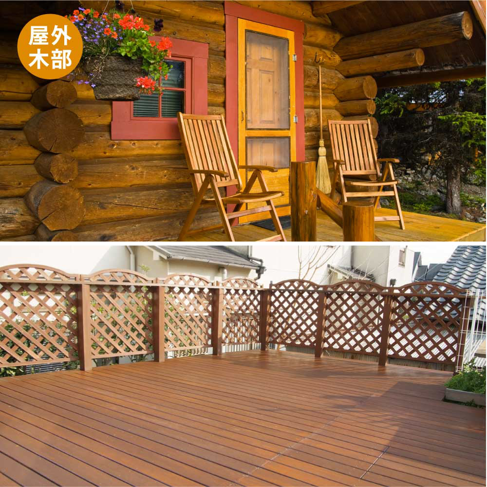 ●浸透性に優れ、耐久力が高い油性タイプ。保護効果が高いので傷みやすいウッドデッキや木製外壁などに適しています。