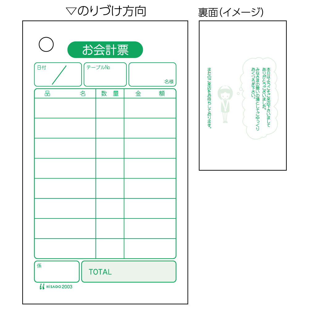| 商品名 | 〔手書き用〕お会計票 70×120 1P 2003 |