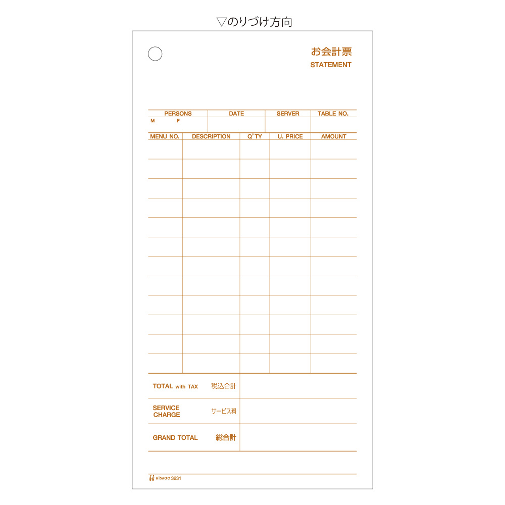 | 商品名 | 〔手書き用〕お会計票(税サービス付) 105×200 3P 3231 |