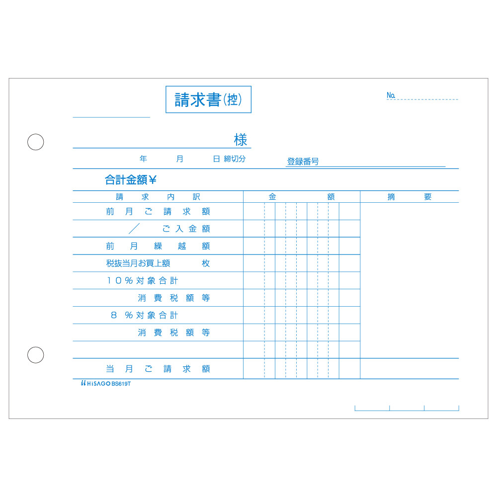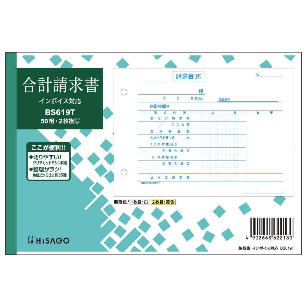 | 商品名 | 〔手書き用〕合計請求書 B6ヨコ インボイス対応 2P BS619T |