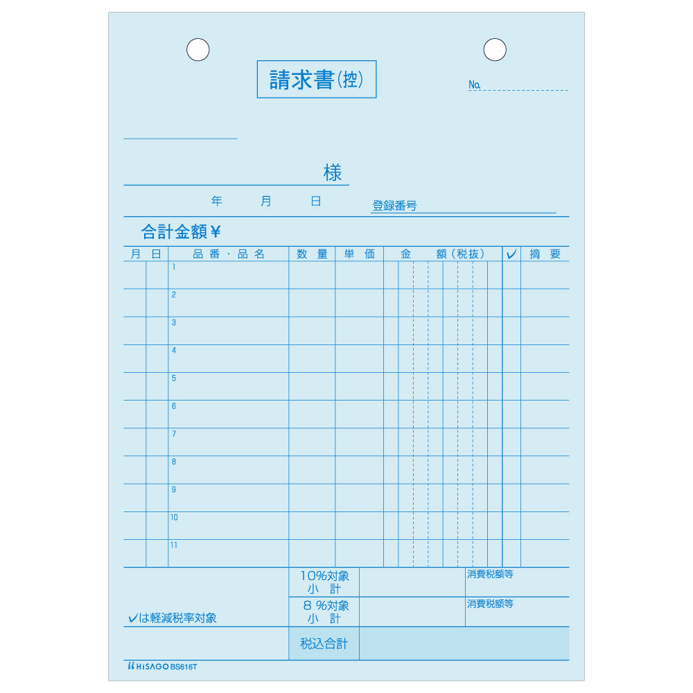 〔手書き用〕請求書 B6タテ インボイス対応 2P BS616T