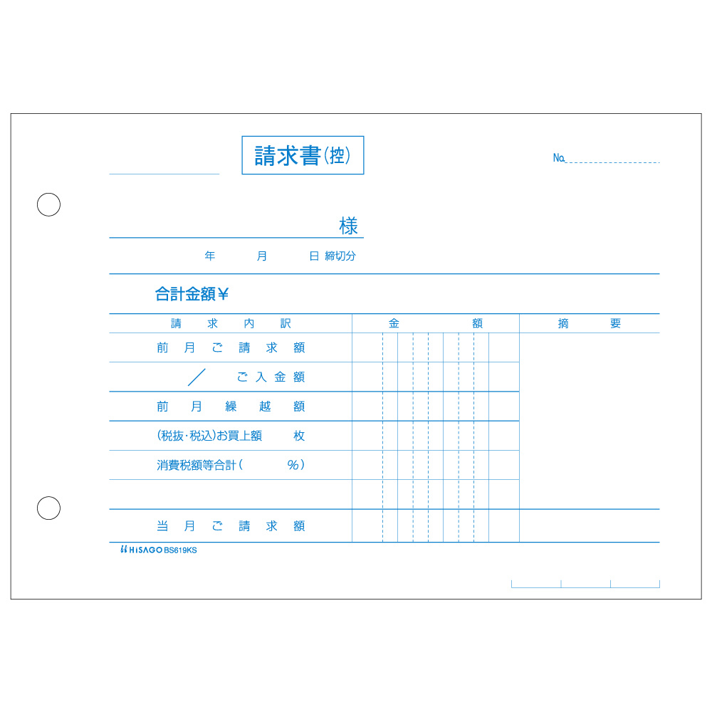 〔手書き用〕合計請求書 B6ヨコ (単独税率記載) 区分対応 2P BS619KS