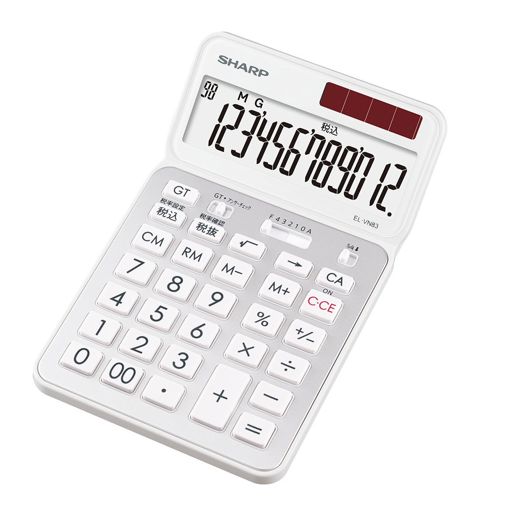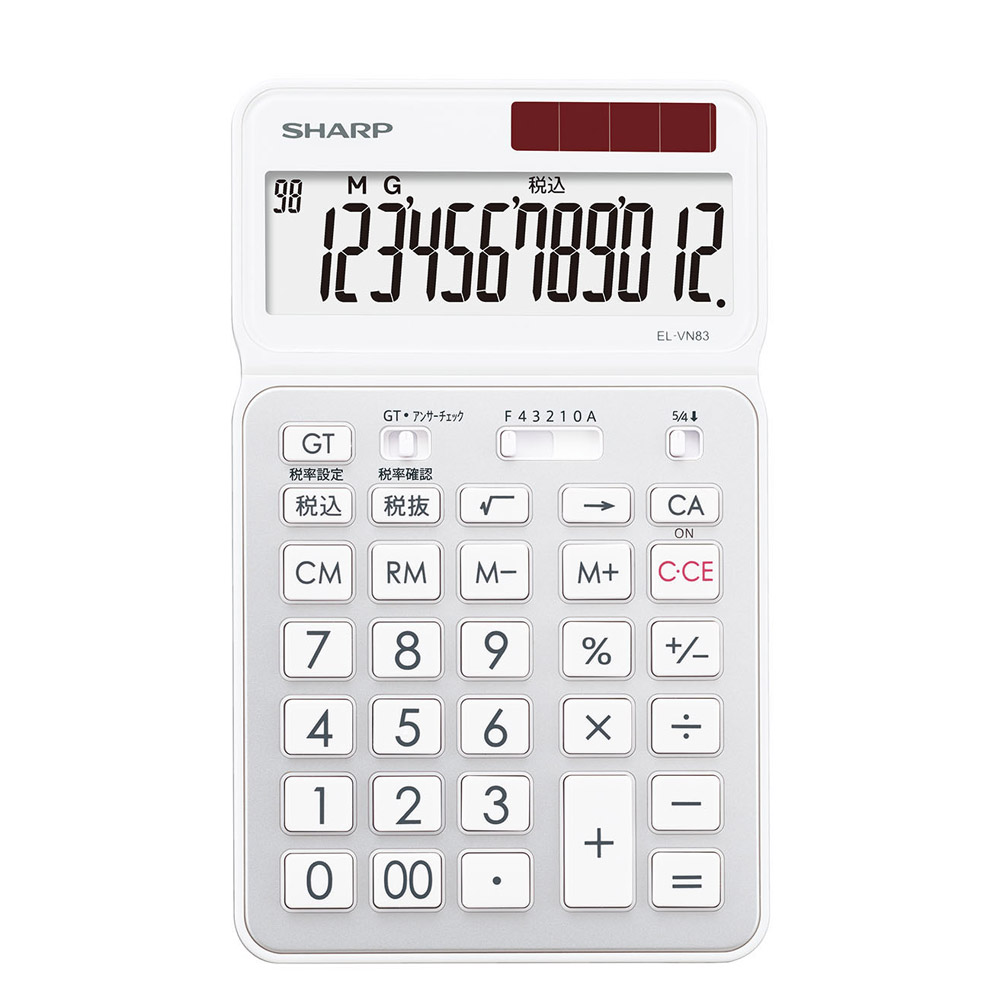 電卓 抗菌仕様ナイスサイズタイプ 抗菌仕様ナイスサイズカラー・デザイン電卓 ホワイト系クリアホワイト EL-VN83-WX [12桁]