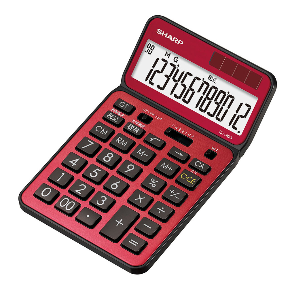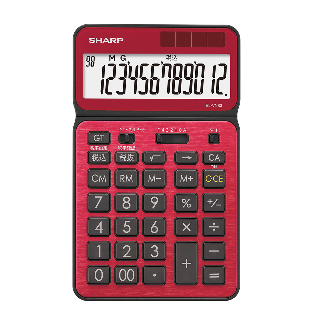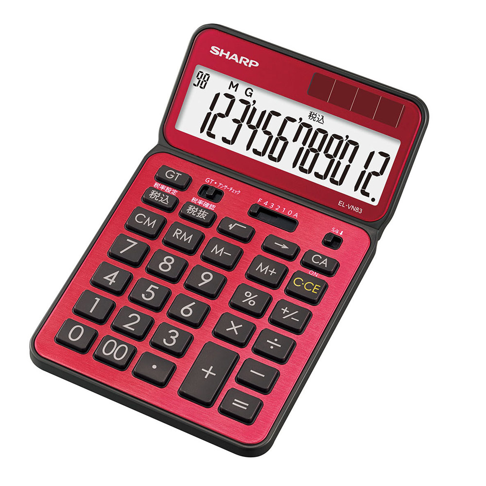 電卓 抗菌仕様ナイスサイズタイプ 抗菌仕様ナイスサイズカラー・デザイン電卓 レッド系スタイリッシュレッド EL-VN83-RX [12桁]