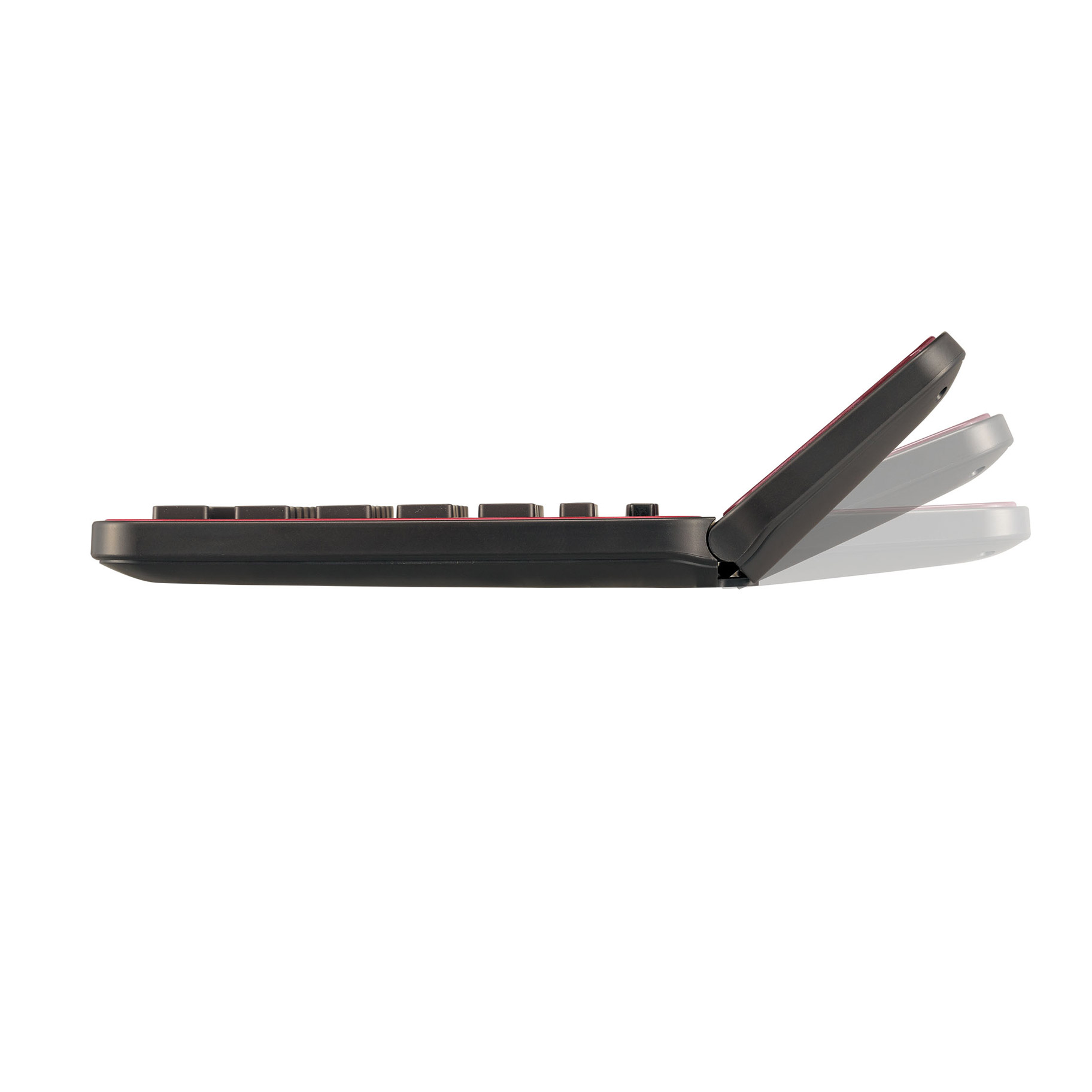 抗菌剤を練り込んだキーを採用。表面にアルミパネルを使用した高級感あるカラー・デザイン電卓(ナイスサイズタイプ・12桁)