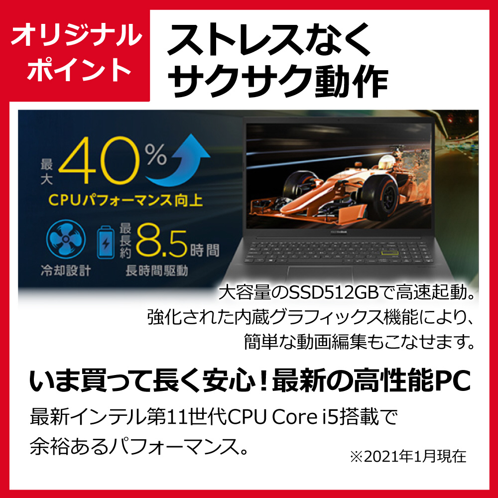ノートパソコン VivoBook 15 K513EA インディーブラック K513EA-BC158TS [15.6型 /intel Core i5 /SSD:512GB /メモリ:8GB /2021年1月モデル]