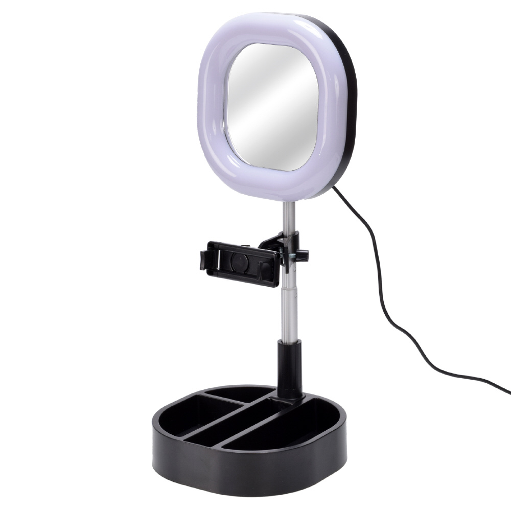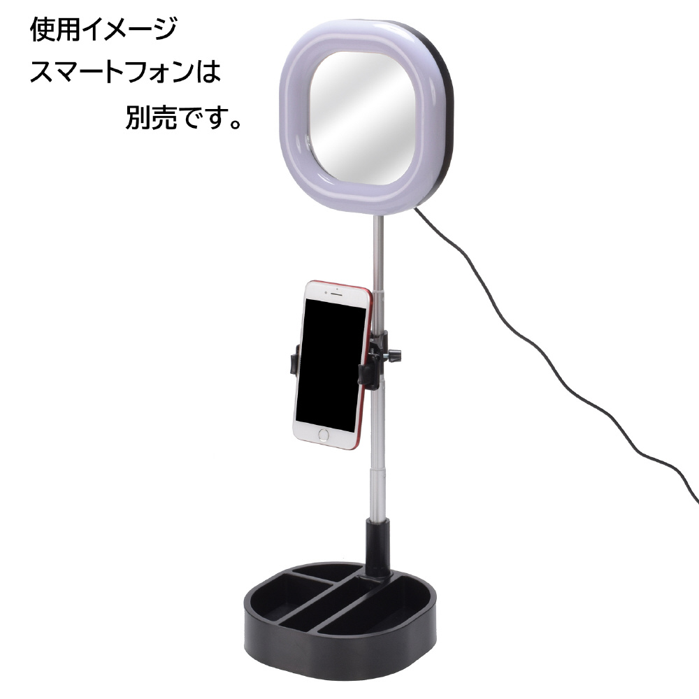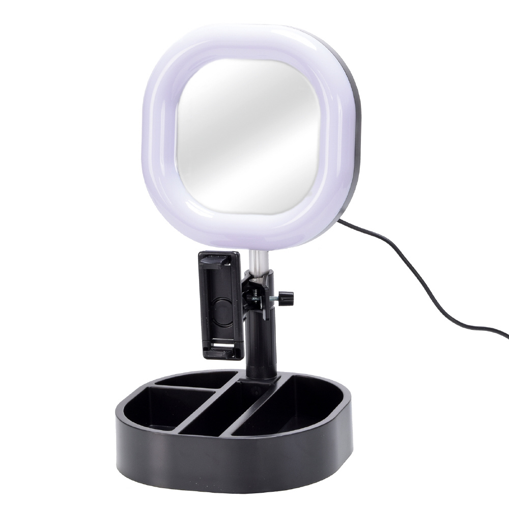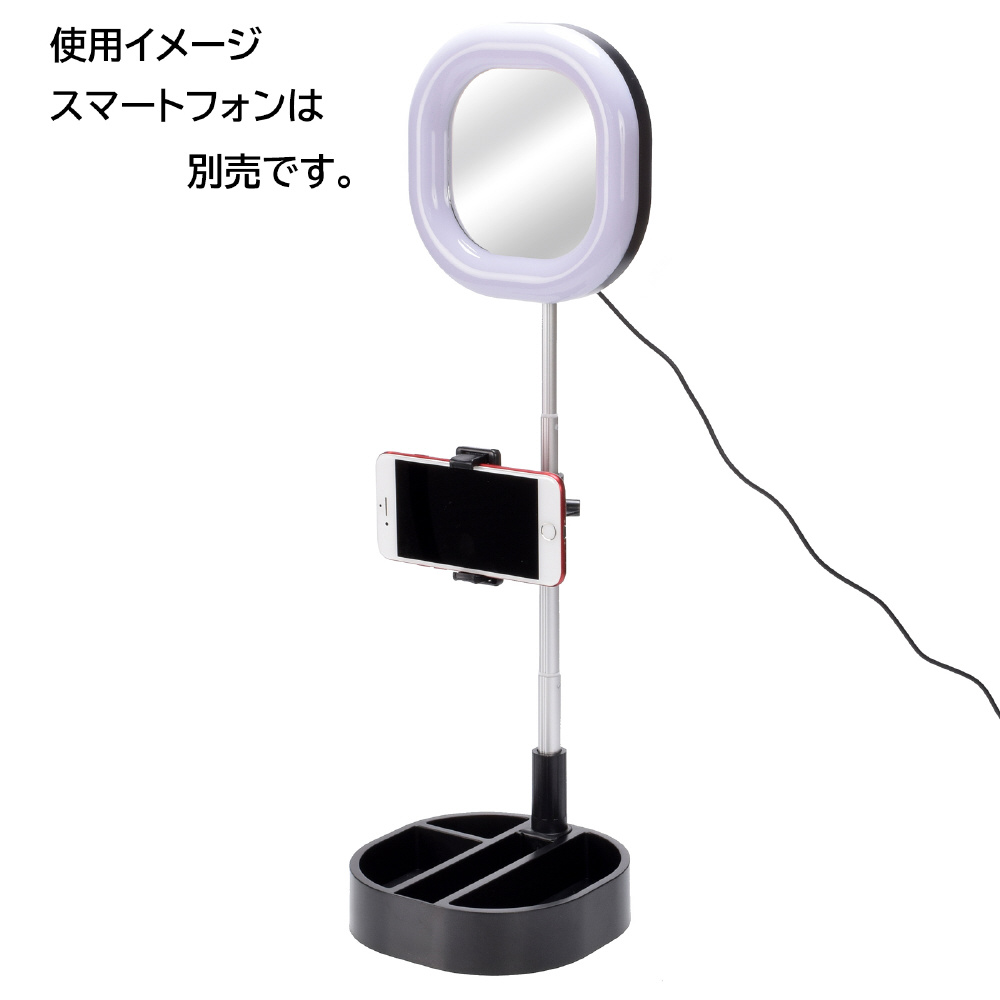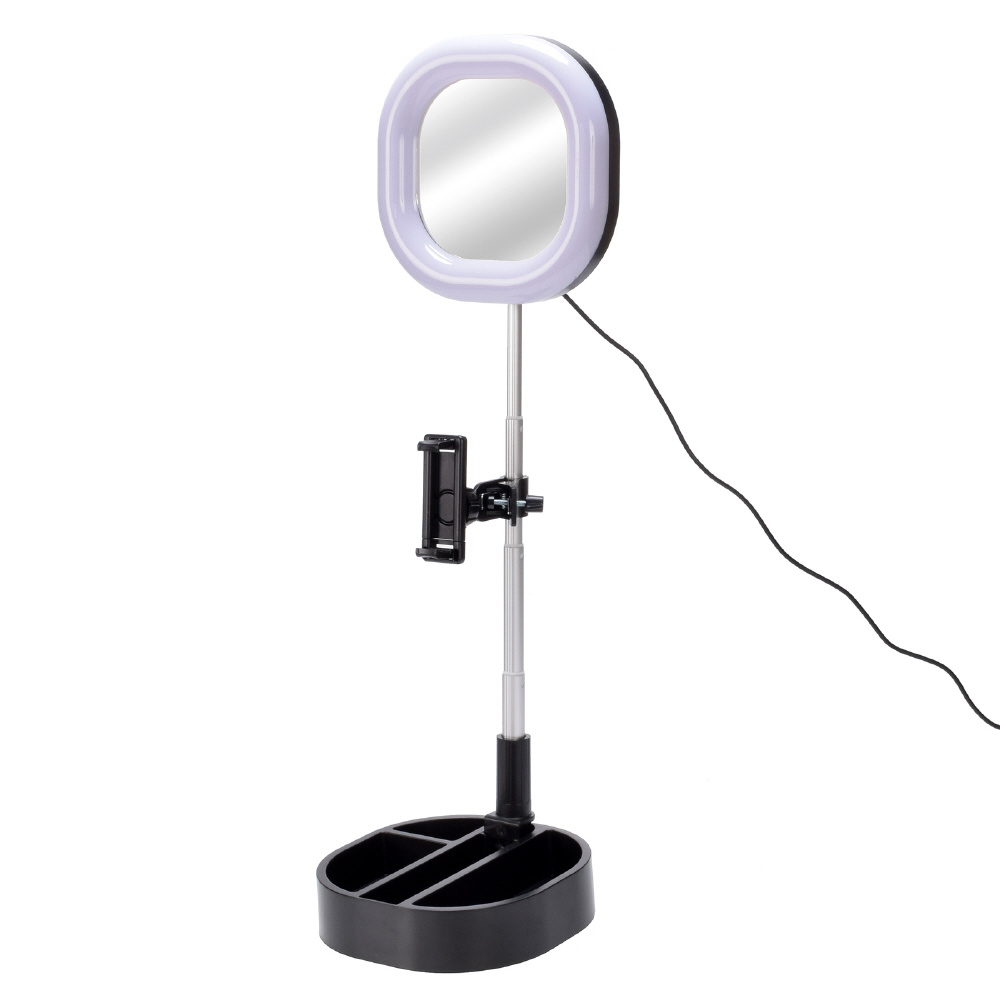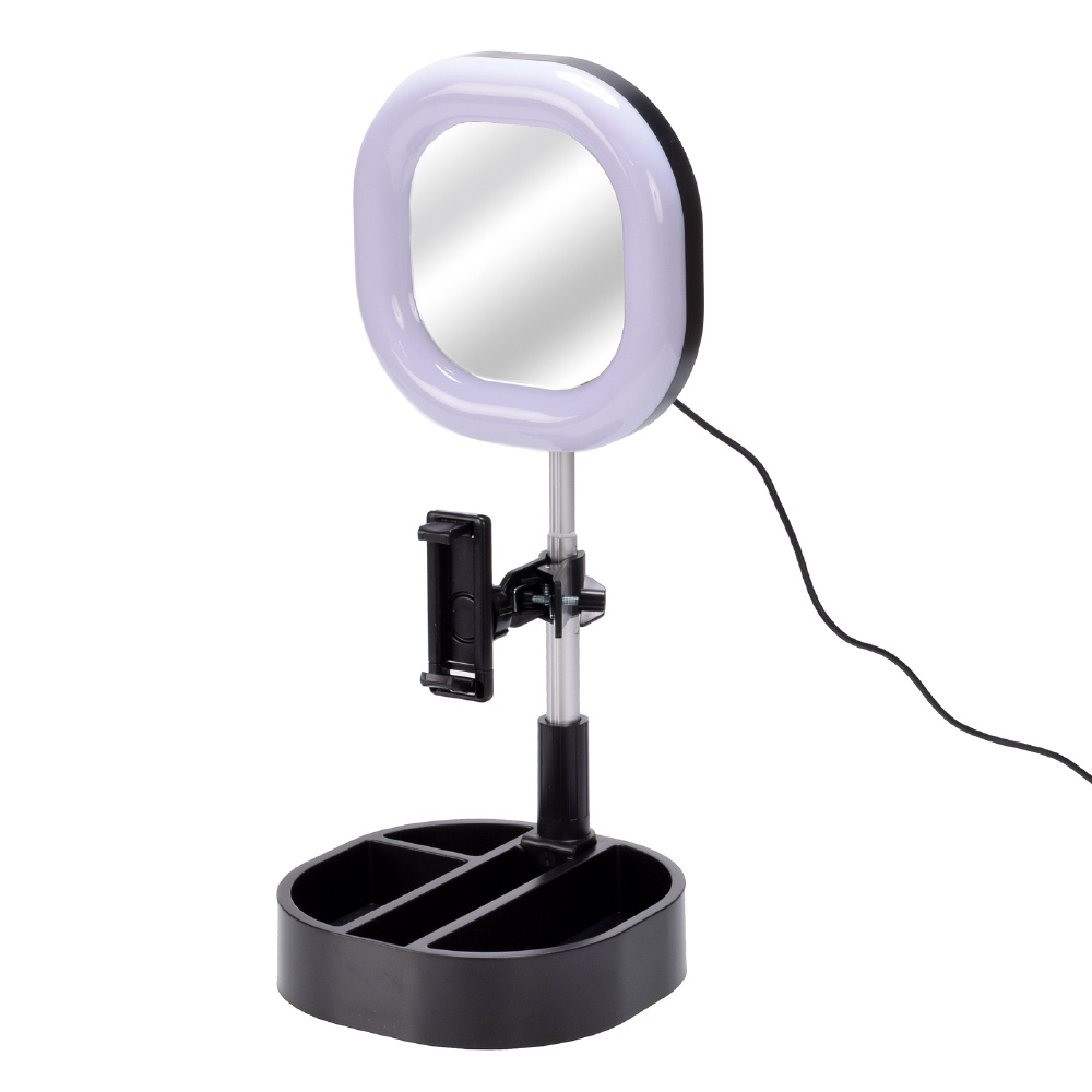 使用後は折りたたんでコンパクトに!持ち運びにも便利。三脚不要のリングライト&ミラー&スマホスタンドの3in1。