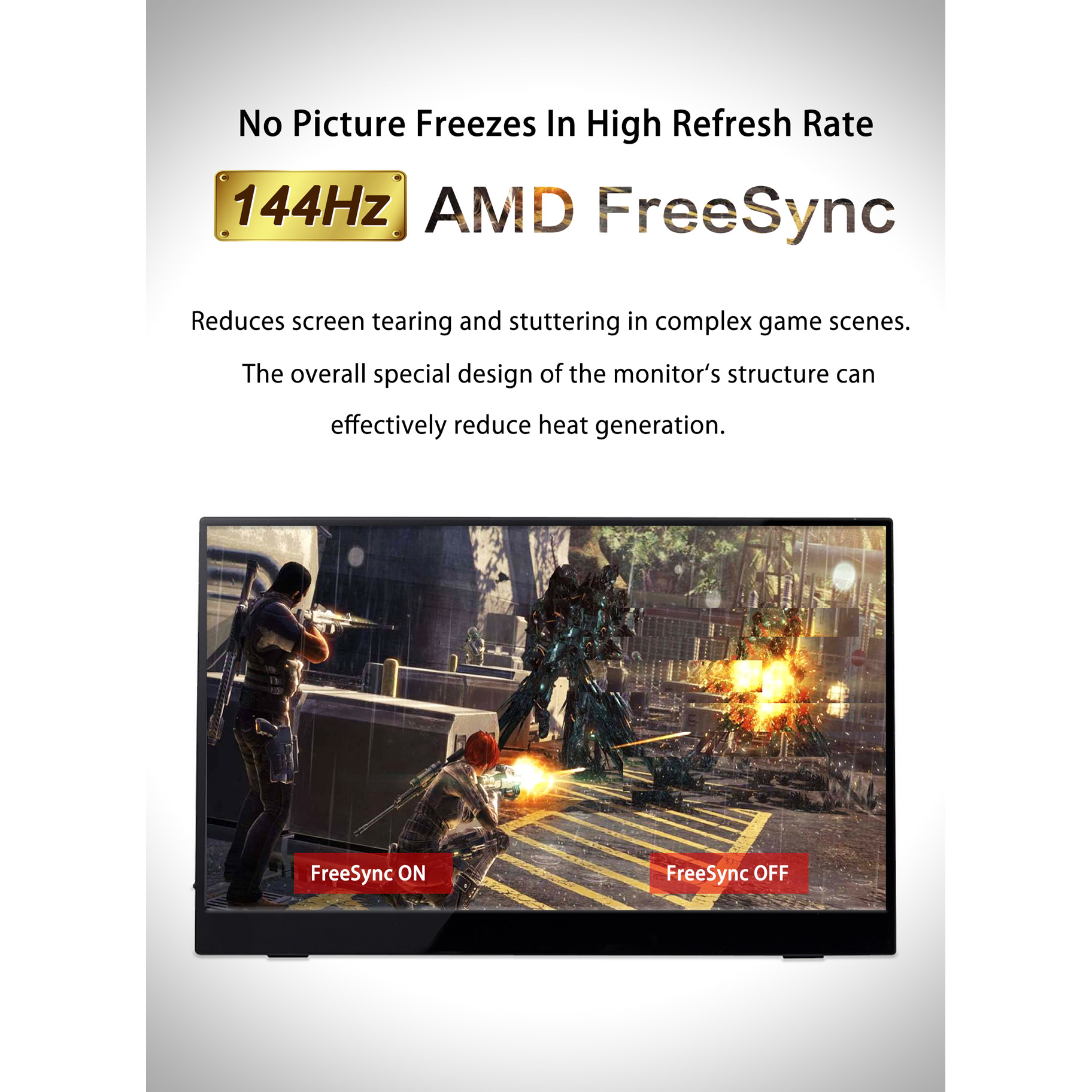 「Quintokuta 15.6” 144Hz FHD Portable Display」はUSB Type-CおよびHDMIに対応した、スリム・軽量なポータブル型液晶ディスプレイです。USB Type-C接続時はケーブル1本だけで動作できます。15.6インチ / 1920 x 1080(Full HD)、144Hzリフレッシュレート対応の非光沢IPS液晶を搭載し、ステレオスピーカを内蔵しています。