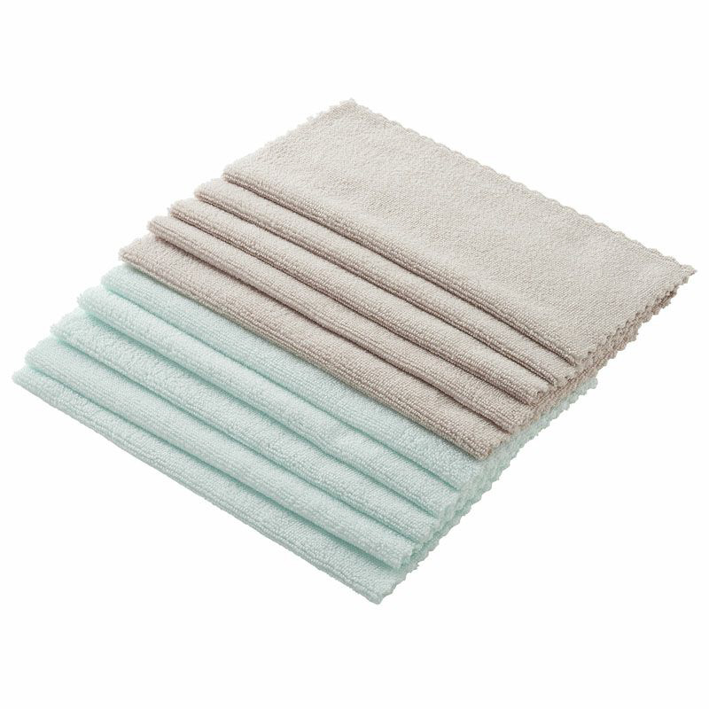洗剤を使わずに汚れを落とす高機能なクロスです。超極細繊維(マイクロファイバー)が油汚れやホコリなどをスッキリ落とし、水滴をすばやく拭き取ります。カラ拭き、水拭きどちらでもお使いいただけます。使いやすい色合いの2色各5枚入りです