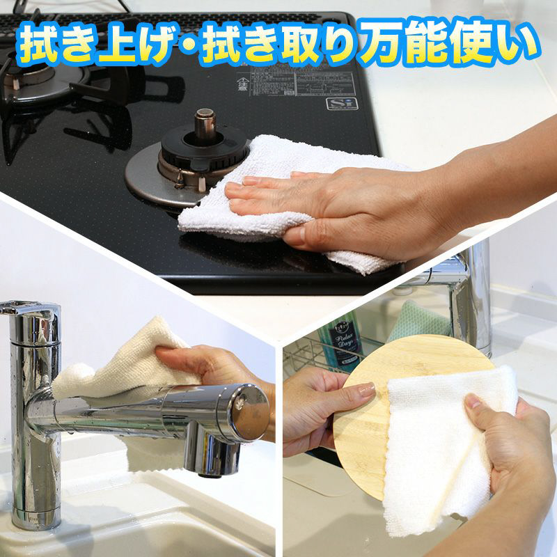 ・超極細繊維(マイクロファイバー)が油汚れやホコリなどをスッキリ落とし、水滴をすばやく拭き取ります。