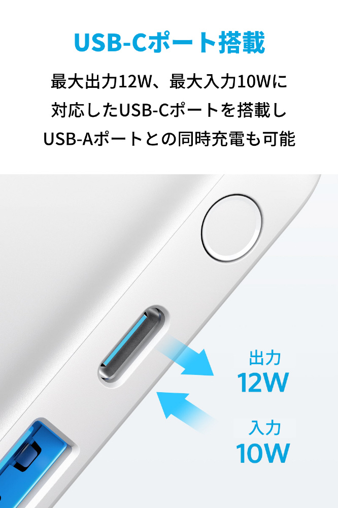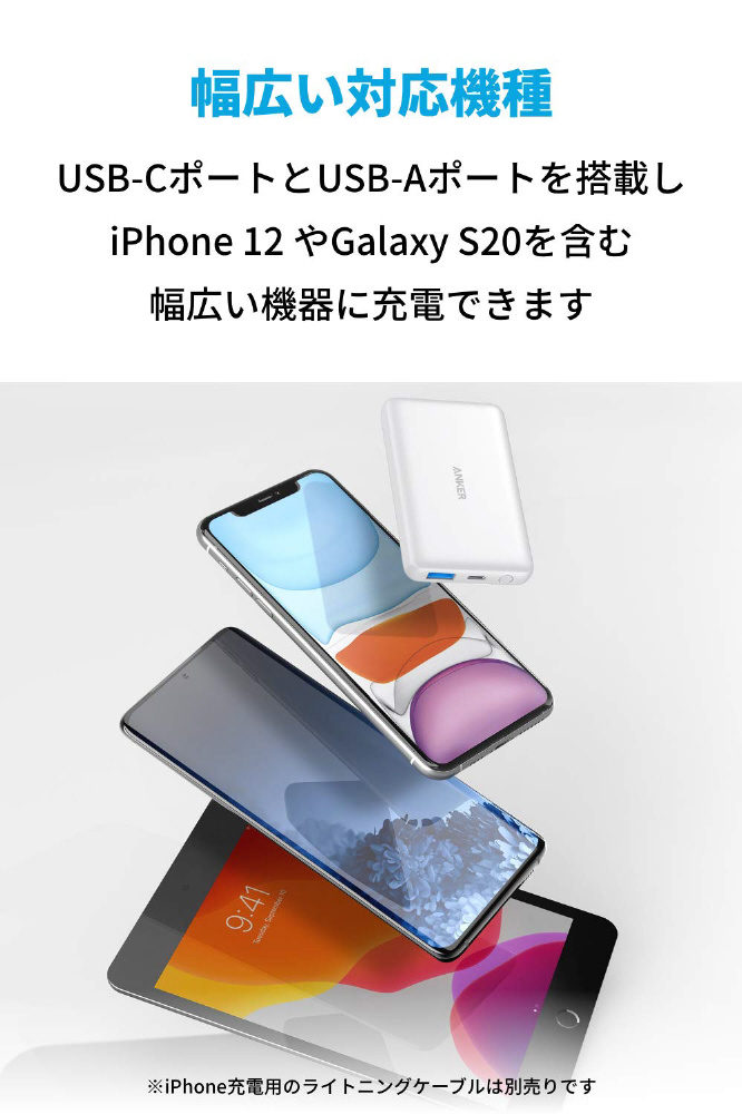 モバイルバッテリー PowerCore III 5000 5000mAh 付属ケーブル長: 0.6m ホワイト A1217N21 [2ポート]