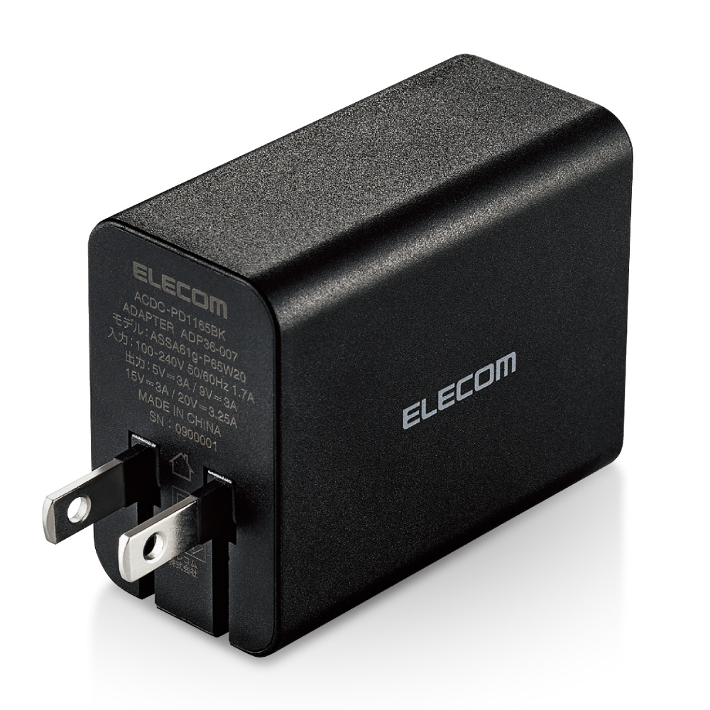 AC-USB充電器 ノートパソコン・タブレットPC対応 65W [1ポート:USB-C /USB Power Delivery対応] ブラック ACDC-PD1165BK 【sof001】