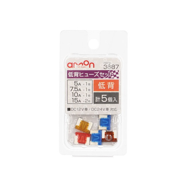 3687 低背ヒューズセット 5/7.5/10/15A (約11×9×4mm)/計5個入り 3687