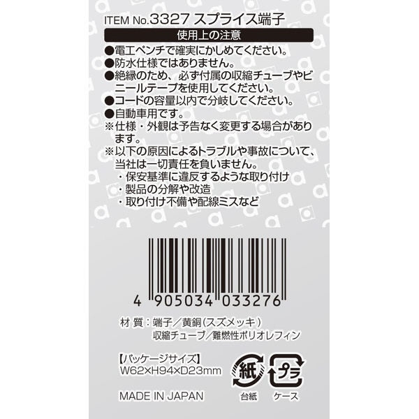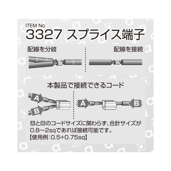 | 商品名 | 3327 スプライス端子 AV(S)0.8〜2sq/15個入り 3327 |