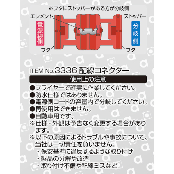 | 商品名 | 3336 配線コネクター 赤 AV(S)0.5〜0.85sq/8個入り 3336 |