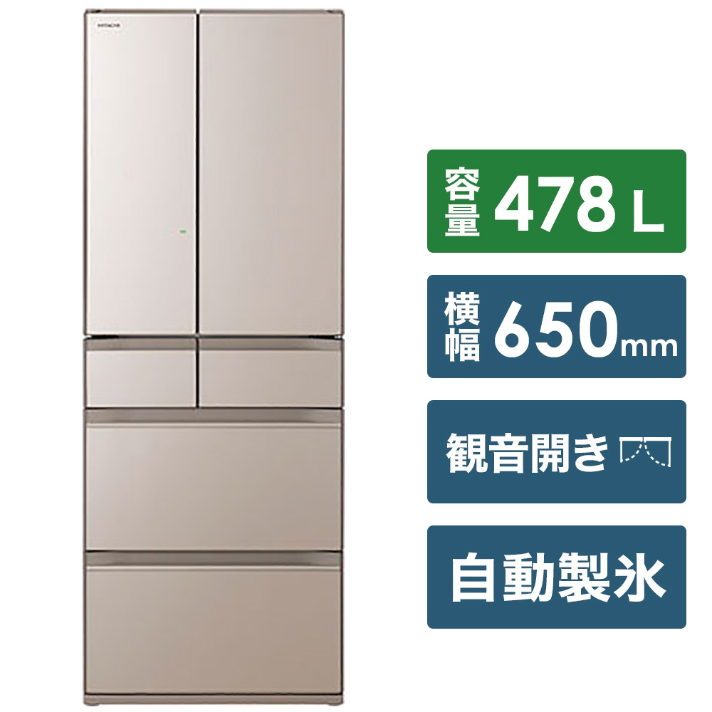 | 商品名 | 【基本設置料金セット】 冷蔵庫 HWタイプ クリスタルシャンパン R-HW48R-XN [478L /6ドア /観音開きタイプ] |