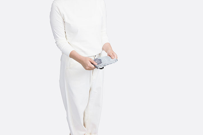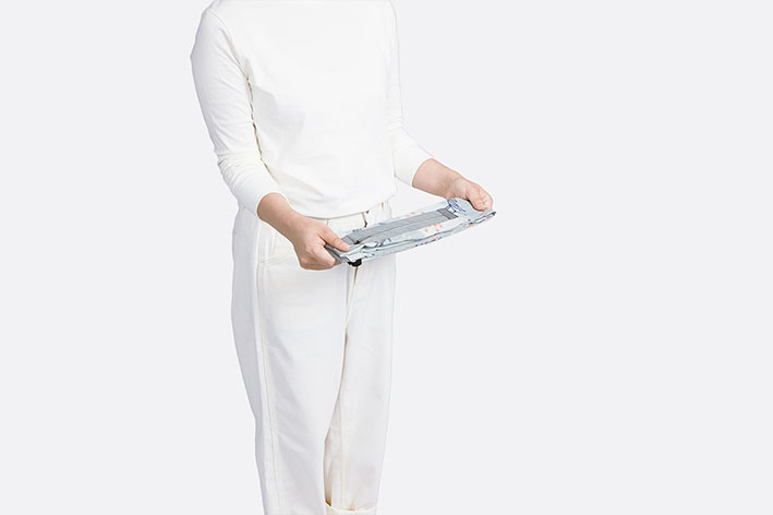 タテ型タイプの一気にたためるコンパクトバッグ。