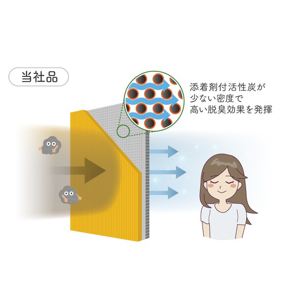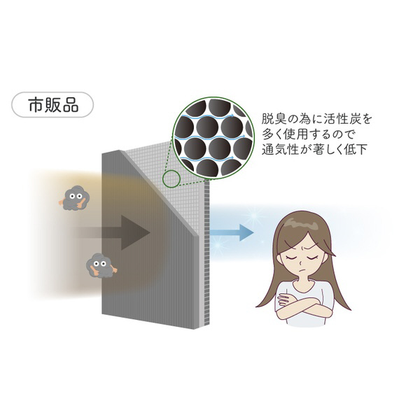●新開発の活性炭がペット臭(アンモニア)をカット!渋滞時などに気になる排ガス臭(アセトアルデヒド)に加え、クリーンエアフィルタープレミアムでは、ペット臭の代表的な臭い(アンモニア)も吸い取ります。新開発の活性炭でイヤなニオイを強力に吸着し、外気導入も内気循環も快適です。