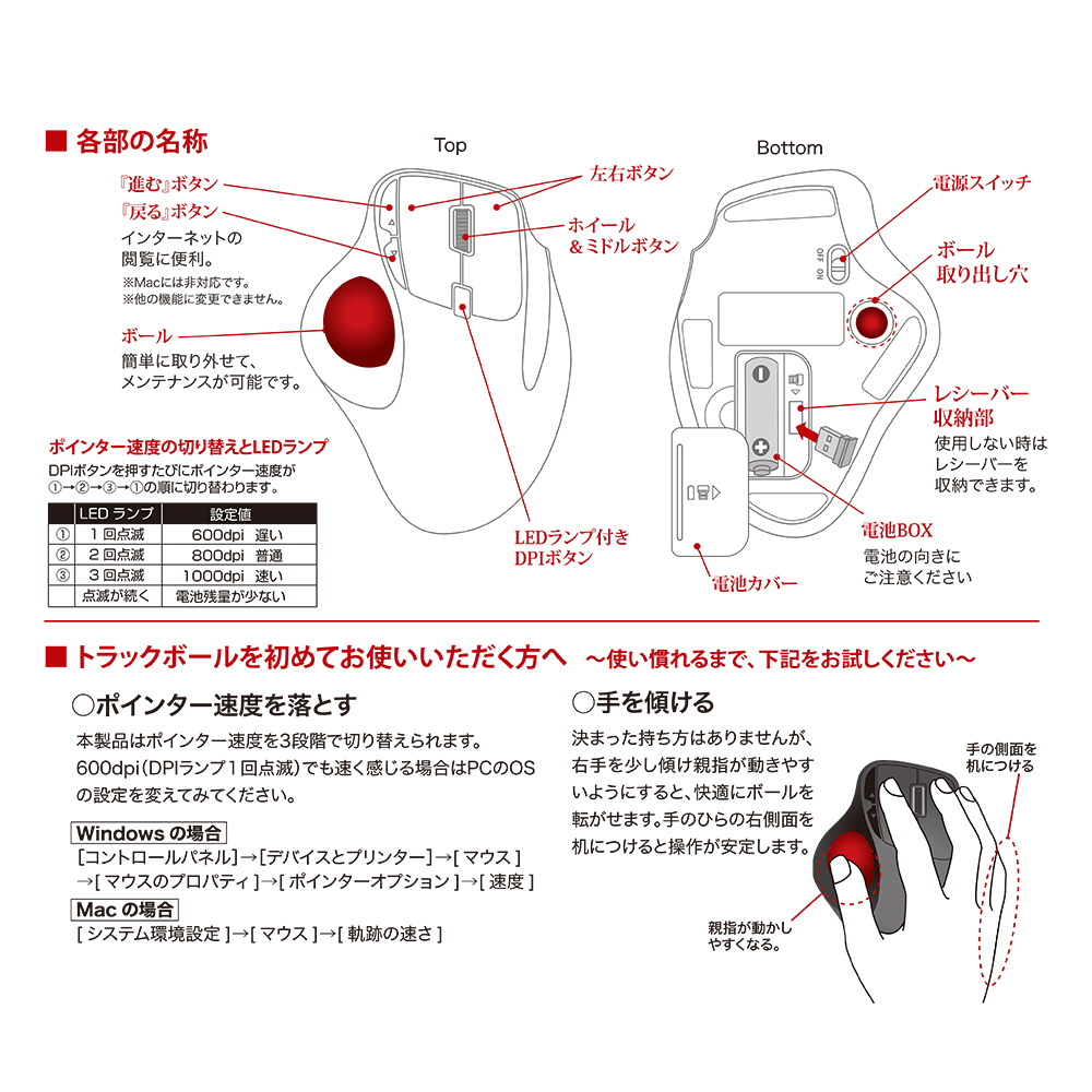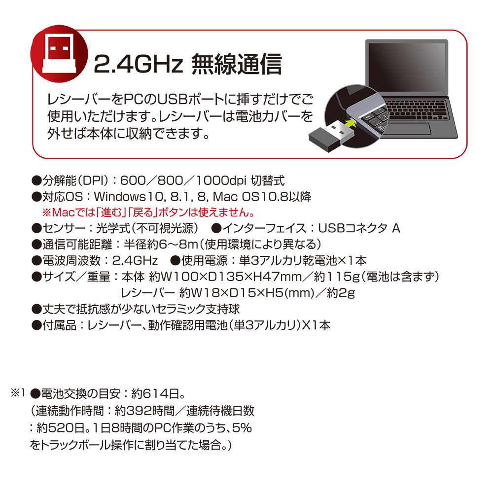 トラックボール ホワイト MUS-TRIF175W [光学式 /無線(ワイヤレス) /5ボタン /USB]