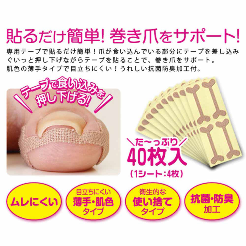 貼るだけ簡単!テープで食い込みを押し下げ巻き爪をサポート!