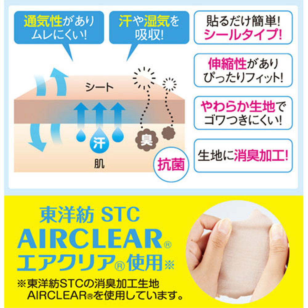 ムレにくく、汗や湿気を吸収!貼るだけ簡単シールタイプで、ズレにくい。