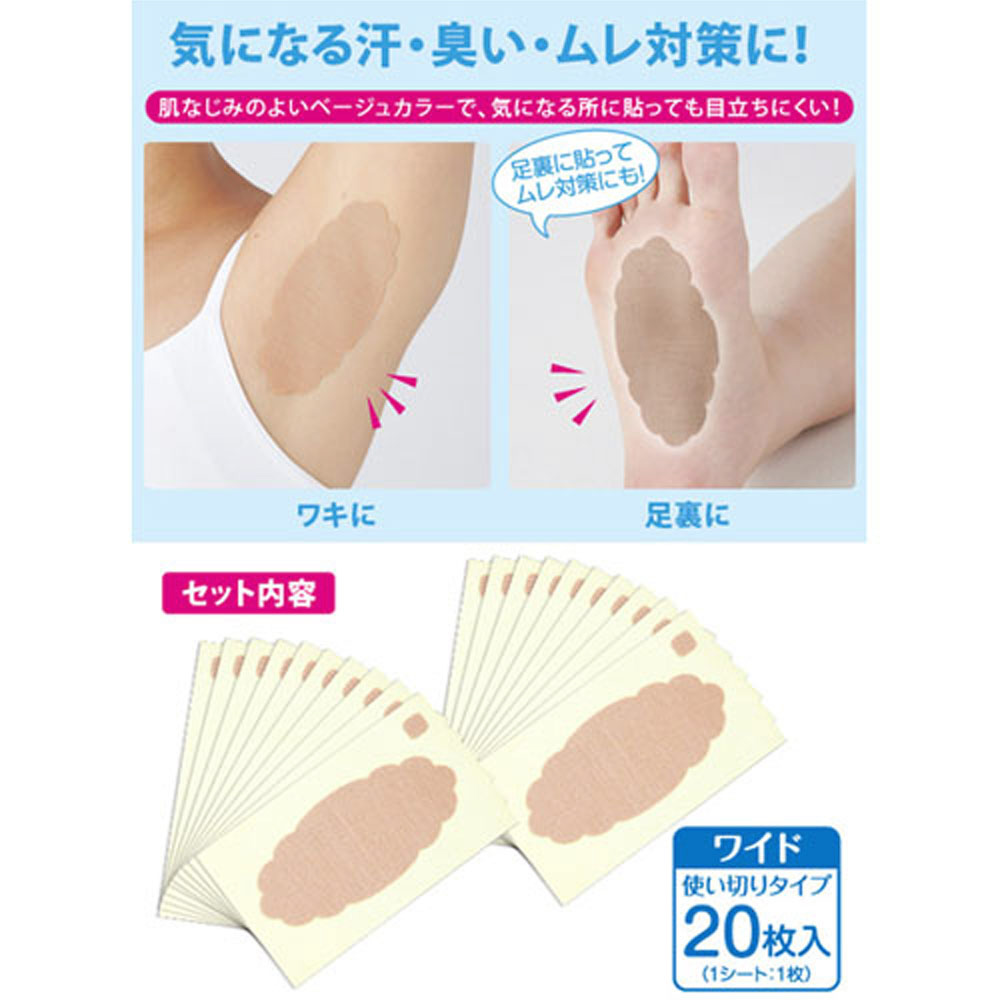 足裏に貼ってムレ対策にも!目立ちにくいベージュ色。使い切りタイプ20枚入。