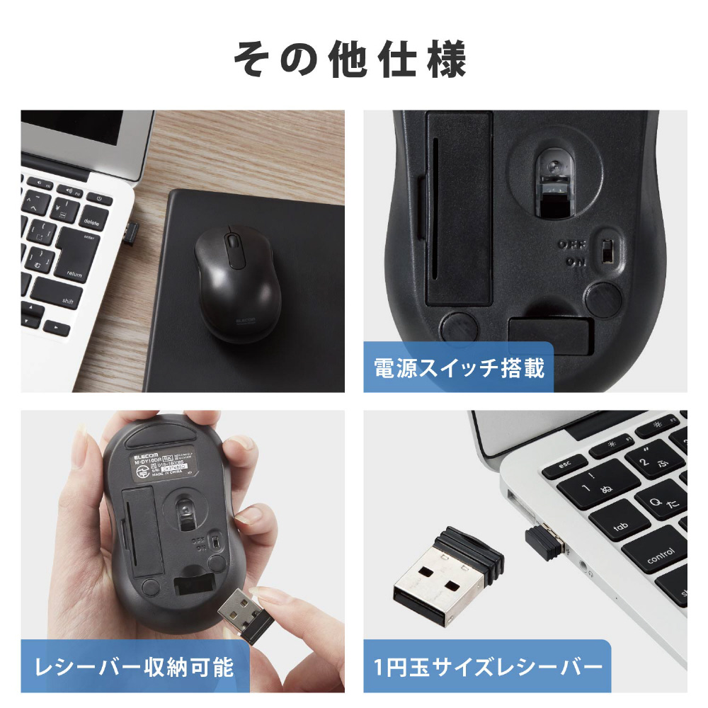 ■レシーバはマウス本体内に収納できるため、持ち運び時のレシーバの紛失を防ぎます。