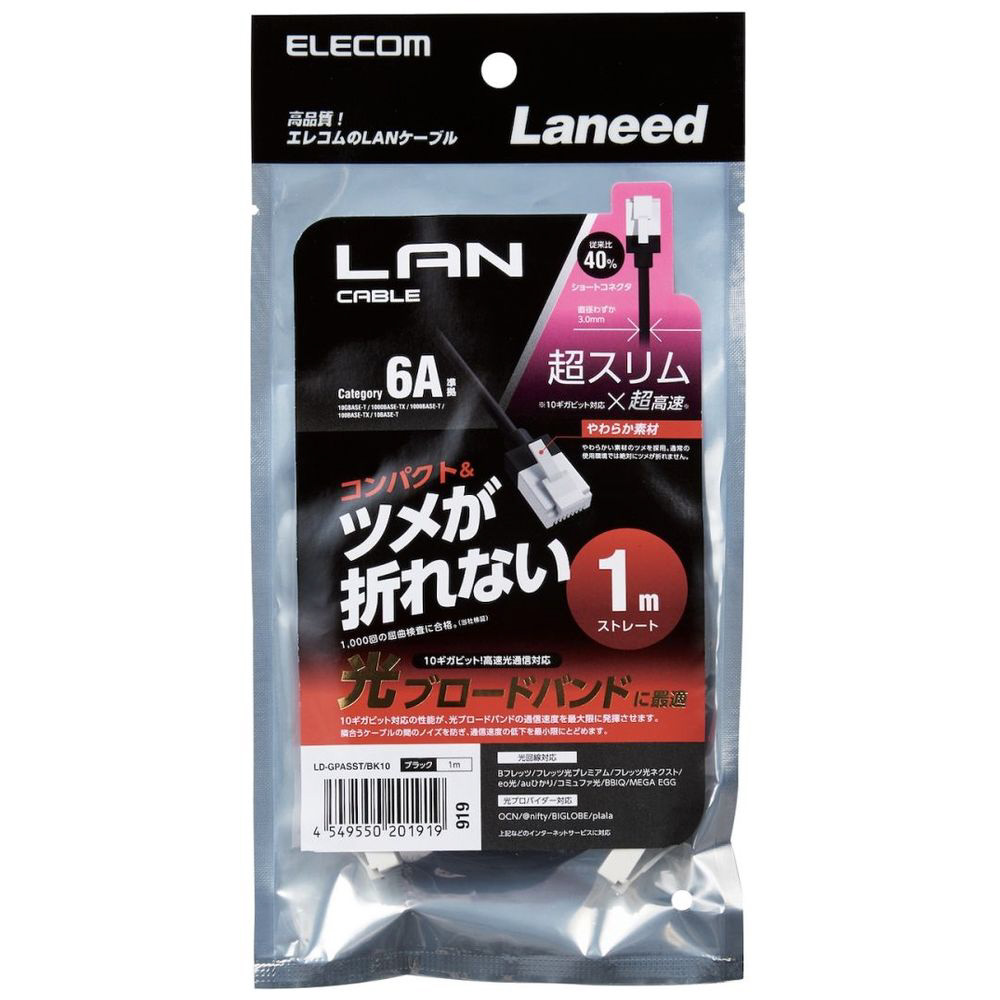 LANケーブル ブラック LD-GPASST/BK10 [1m /カテゴリー6A /スリム]