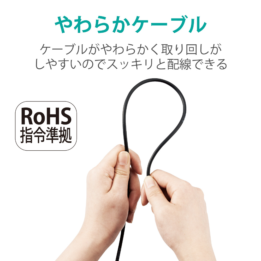 プロテクタと新素材コネクタ採用のダブル構造で通常の使用環境では絶対にツメが折れない!周波数帯域500MHzを保証する10ギガビット・イーサネットに対応。ケーブルが柔かく取り回しがしやすい、カテゴリー6A準拠のやわらかLANケーブル。※1000回の屈曲検査合格(当社検証)