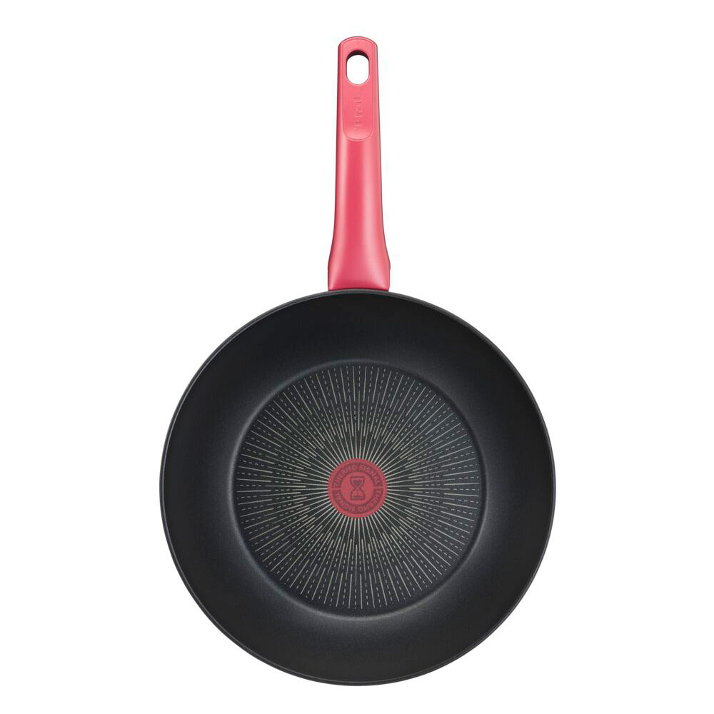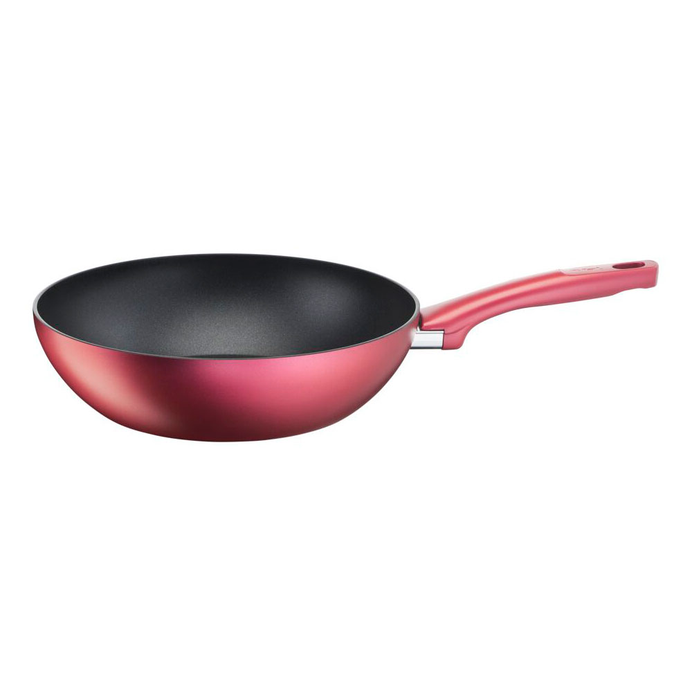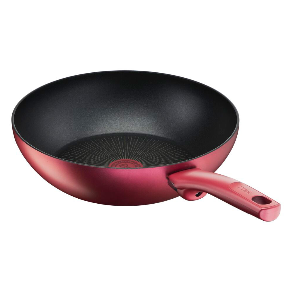 ティファールIHルージュ・アンリミテッドウォックパン28cmは、チタン・アンリミテッドコーティングで耐久性抜群。広いIHディスクで効率よく均一に加熱し、新デザインのお知らせマーク付き。使いやすさと長持ちを両立した逸品です。