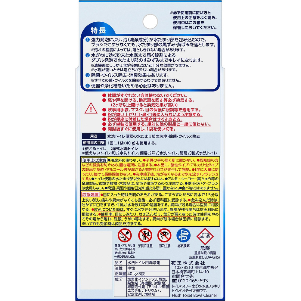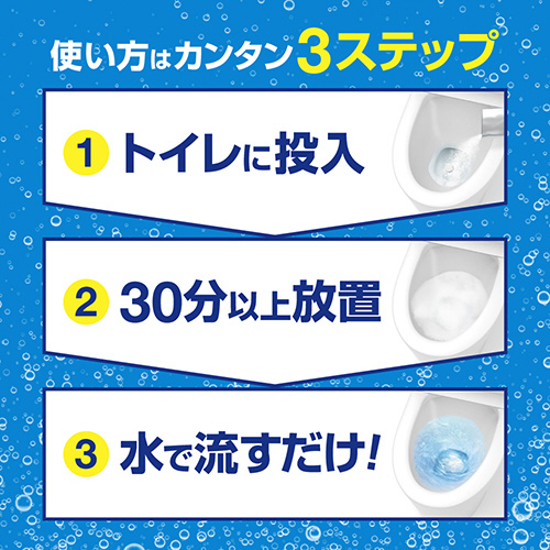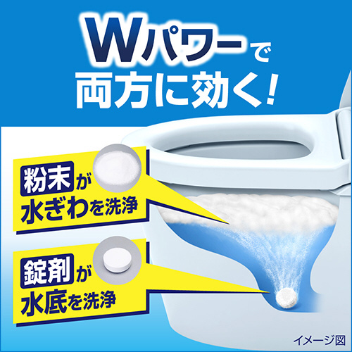 水ぎわに効く粉末と水底まで届く錠剤、ダブル発泡でトイレの水ぎわ・水底の汚れを落とせる強力発泡洗浄剤。