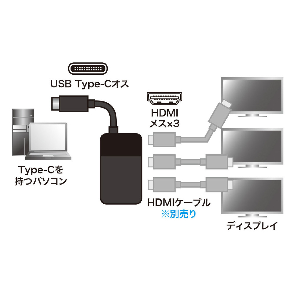 DisplayPort Altモード対応Type-Cから最大3台のディスプレイ(HDMIポートを持つ機種)に接続。