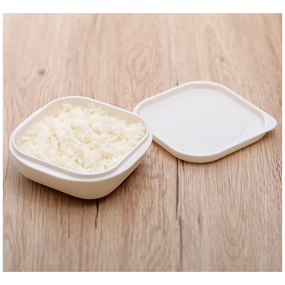 電子レンジで冷凍ご飯をムラなくふっくら温める保存容器。
